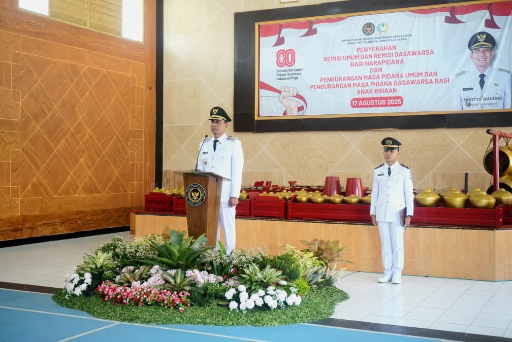 โSaya ucapkan selamat bagi Narapidana dan Anak Binaan yang mendapatkan remisi dan pengurangan masa pidana, sekaligus memperoleh kebebasan untuk kembali ke tengah masyarakat, keluarga, dan sanak saudara. Jadilah pribadi yang baik, taat hukum, tidak mengulangi tindak pidana, serta dapat berperan aktif dalam pembangunan dan hidup wajar sebagai warga negara yang bertanggung jawab,โ ujar Bupati.