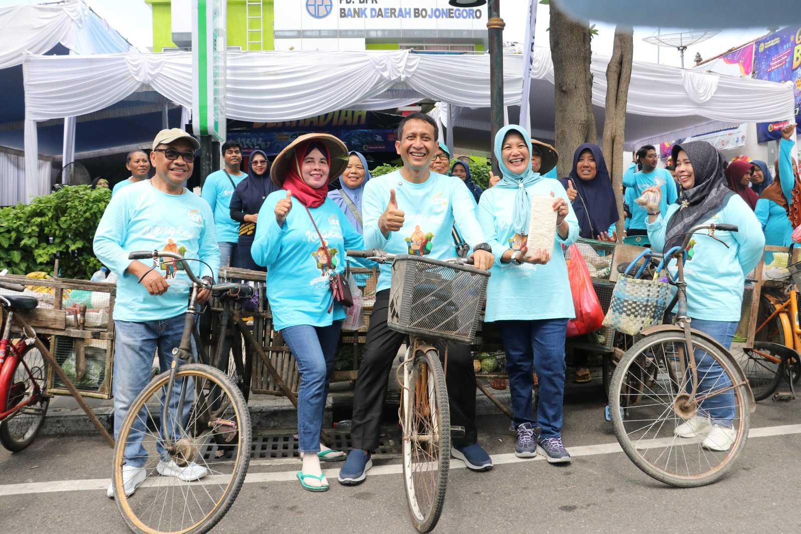 Tampak meriah saat jajaran PD BPR Bank Daerah Bojonegoro, Asisten daerah, kepala OPD terkait dan tamu undangan ikut memilih dan membeli sayur mayur kepada 125 penjual Rengkek yang dihadirkan.