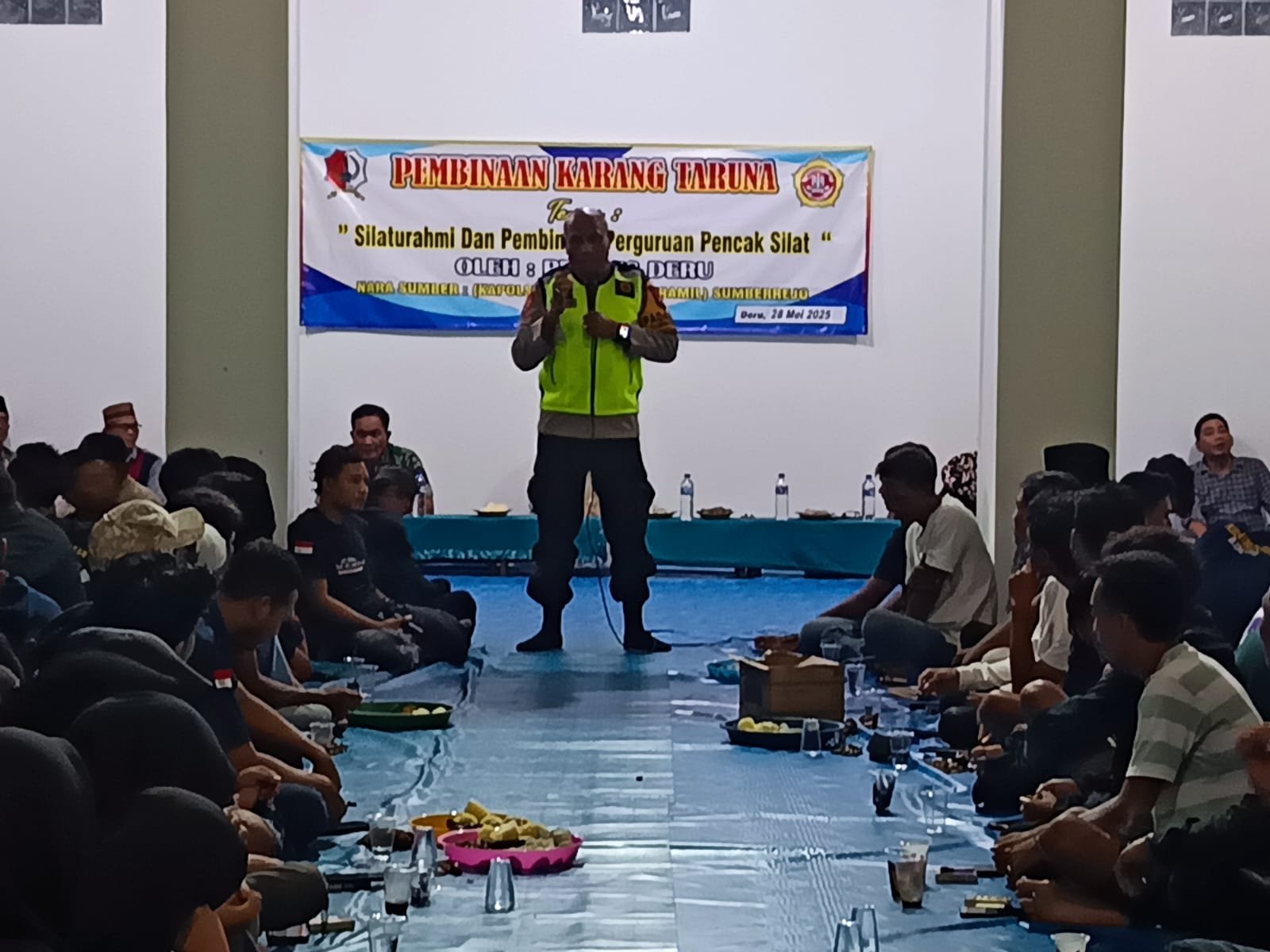 Dalam kegiatan yang laksanakan di Pendopo Balai Desa Deru ini, diikuti oleh ratusan Pemuda yang berafiliasi dengan beberapa perguruan silat yang berada di Desa Deru, Kapolsek juga mengajak untuk tidak terjerumus dalam tindakan kriminal seperti perkelahian, penyalahgunaan narkoba serta tindakan kriminal lainnya yang tentu saja sangat merugikan terutama pada diri sendiri. Selain itu juga untuk tidak menggunakan knalpot brong pada kendaraan karena tidak sesuai spektek pabrik yang tentu juga sangat mengganggu orang lain karena suara yang ditimbulkan dari knalpot tersebut.