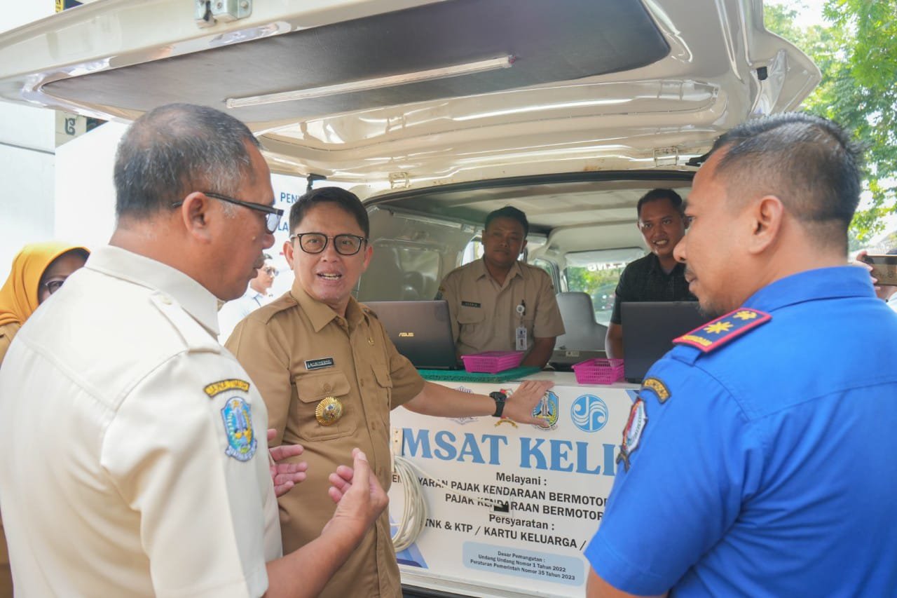 Dan pagi ini Pj. Bupati Bojonegoro melaunching mobil pelayanan Samsat keliling Pemkab Bojonegoro, yang bekerjasama dengan Bapenda Provinsi Jawa Timur dalam menjangkau penarikan pajak kepada Wajib Pajak.