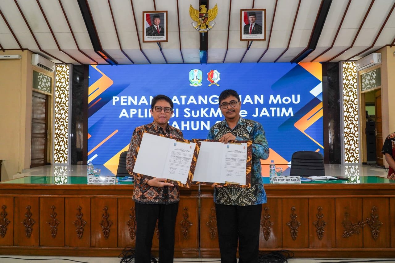 BOJONEGORO – wbbnews.id, Pemerintah Kabupaten Bojonegoro melakukan penandatanganan MoU terkait aplikasi SuKMa -e Jatim. Pendandatanganan berlangsung di Gedung Angling Dharma. Pada Kamis, (23/01/2025), oleh Pj Bupati Bojonegoro Adriyanto dan Budi Raharjo selaku Kepala Biro Organisasi Setda Provinsi Jawa Timur.