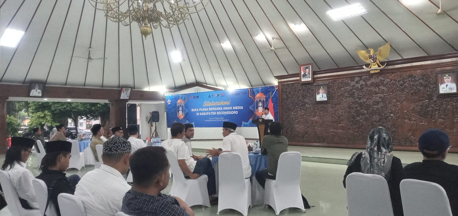 โBOJONEGORO โ wbbnews.id, Suasana khidmat dan penuh kekeluargaan menyelimuti pertemuan antara Pemerintah Kabupaten Bojonegoro dengan para awak media yang bernaung di bawah panji PWI, AJI, SMSI, JMSI dan PJI. Acara yang dirangkai dengan buka puasa bersama ini dilaksanakan di pendopo Malowopati pada, Jumat, (27/02/026), menjadi momentum penting dalam mempererat tali persaudaraan atau ukhuwah antarelemen daerah.